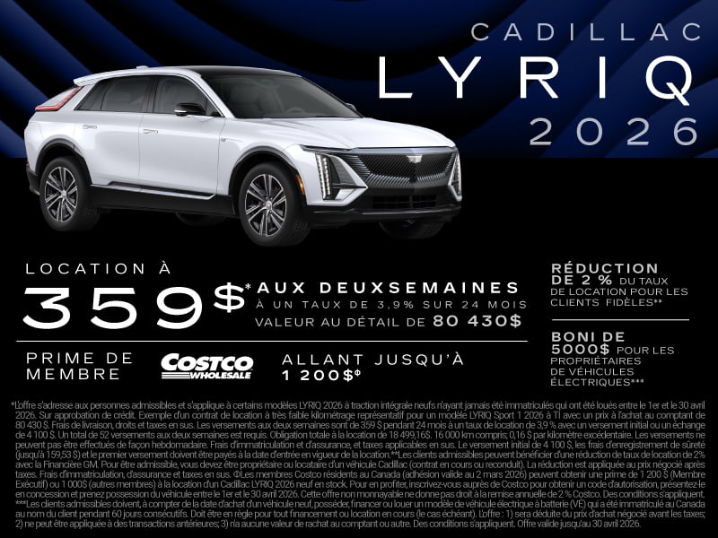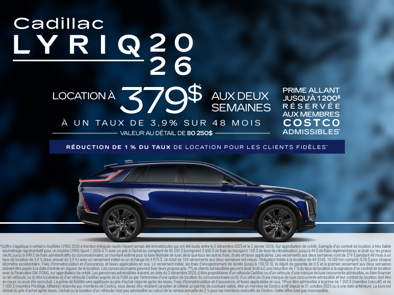 Le Cadillac LYRIQ 2026 représente une évolution majeure dans la jeune histoire du VUS électrique. Cadillac profite de cette nouvelle année-modèle pour élargir sa gamme, introduisant pour la première fois le LYRIQ-V, la version la plus performante jamais produite par la compagnie. Avec ses 615 chevaux et 650 lb-pi de couple, ce modèle devient officiellement le Cadillac le plus rapide de tous les temps, capable d’abattre le 0 à 100 km/h en environ 3,3 secondes. Les versions à propulsion conservent leur généreuse autonomie, jusqu’à 525 km, tandis que les modèles à deux moteurs se démarquent désormais par un comportement plus dynamique et des réglages de direction et de suspension repensés.